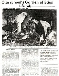 Life Lab project started at Green Acres School in Live Oak, California in 1978. Life Lab teachers transform a vacant lot into a thriving garden. They start developing curriculum based on the idea that children are motivated to learn scientific ideas by asking questions while in the garden.